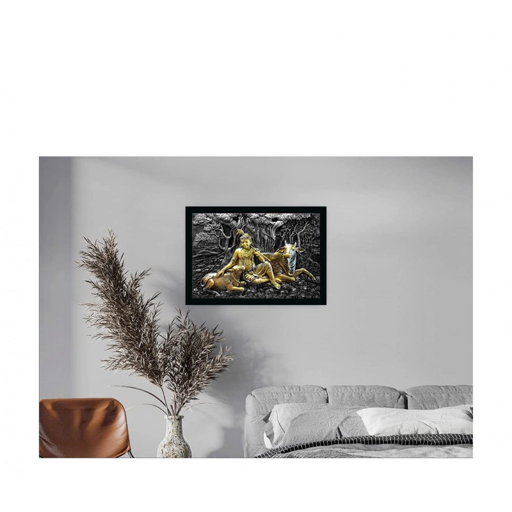 Generic Krishna with Cow Painting with Synthetic Photo Frame (Multicolor)