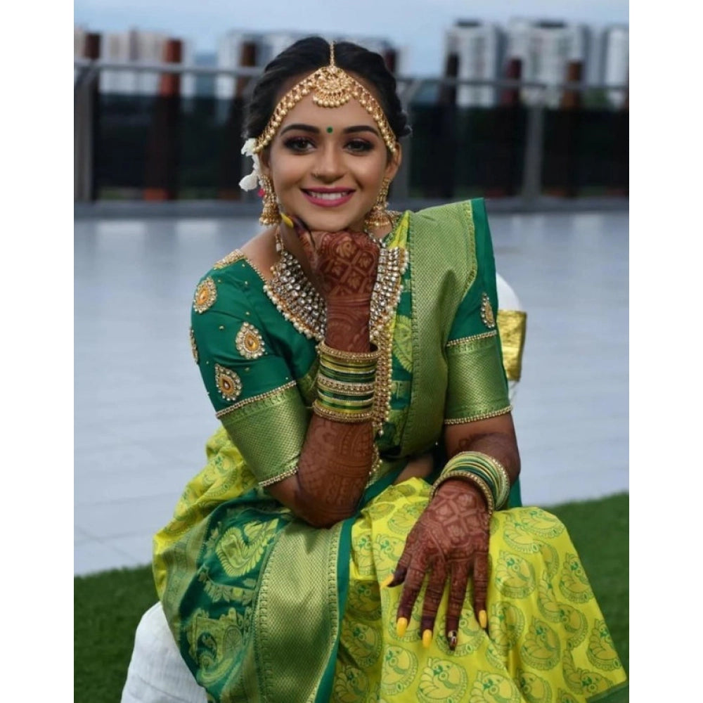 Generic Women's Litchi silk Printed Saree With Unstitched Blouse (Light Green)