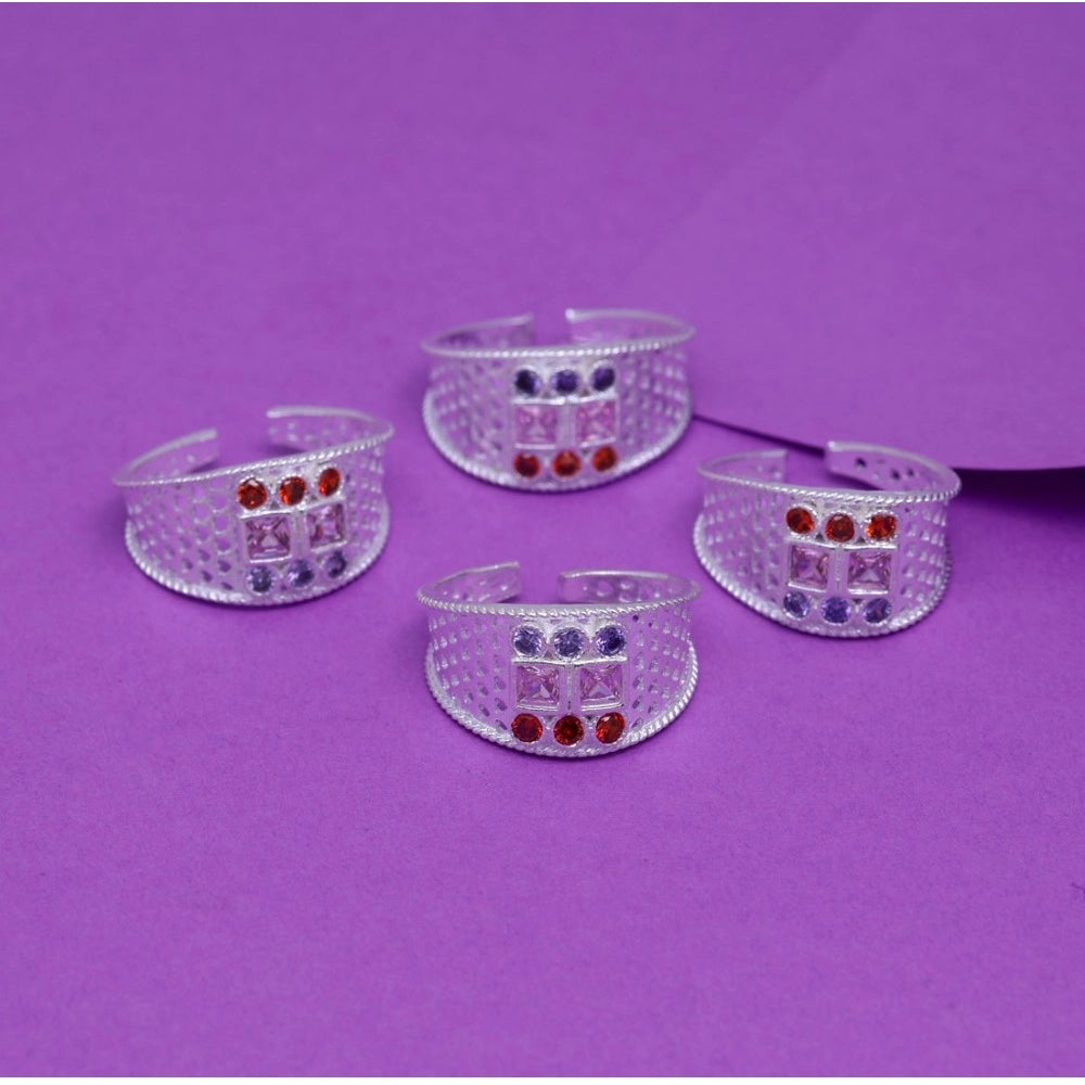 Women's Multi Color Assorted Design Adjustable Toe Rings Combo Of 2 Pairs