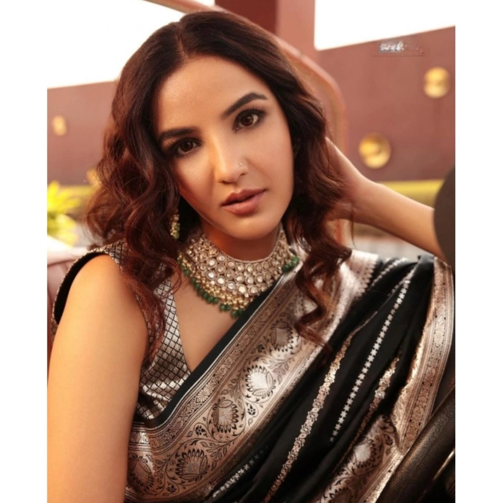 Generic Women's Silk Printed Saree With Unstitched Blouse 5.5Mtr (Black)