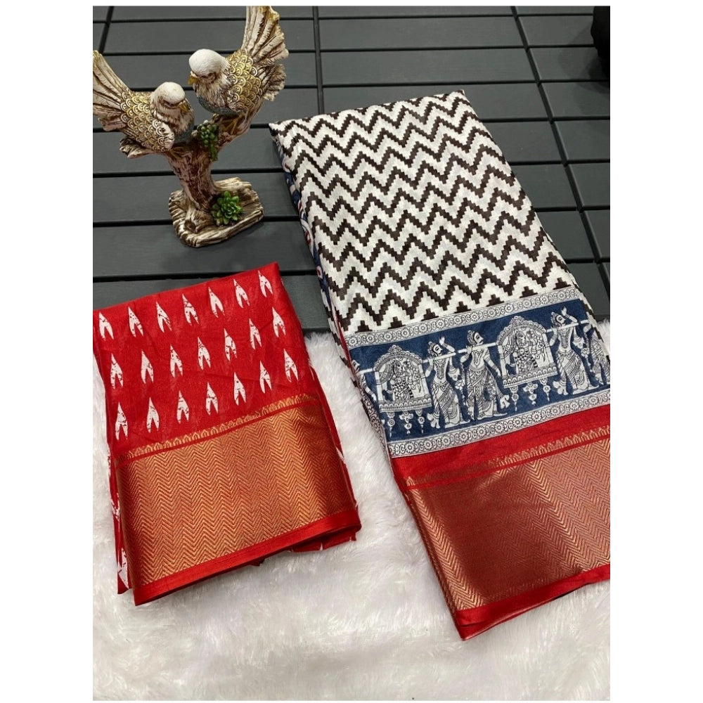 Generic Women's Soft Dola Cotton Kalamkari Printed Saree With Unstitched Blouse 5.5Mtr (Red)